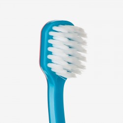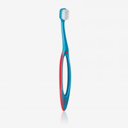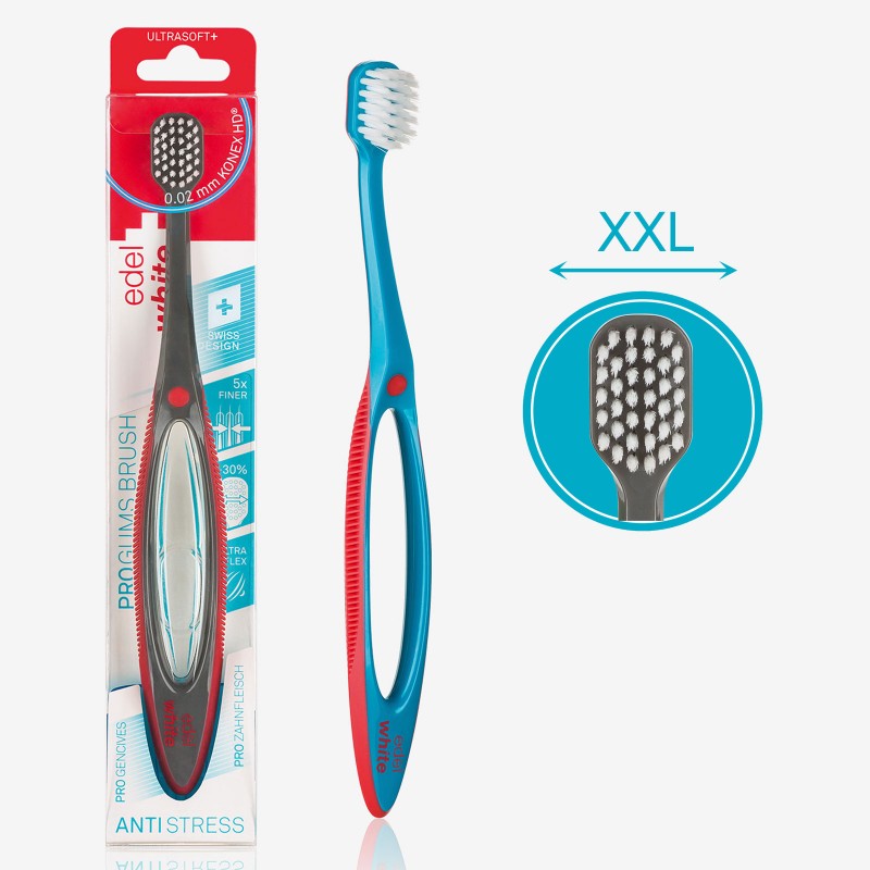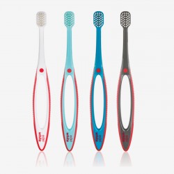 Avec six rangées compactes et 36 touffes de brins spéciaux, Pro-Gums fait 1,5 fois la largeur d'une tête de brosse à dents moyenne. Cela signifie qu'elle peut nettoyer plus à la fois sans même que vous ayez à y penser - c'est infaillible ! Non seulement la tête est plus large, mais elle est aussi plus courte. Cela vous permet de guider la brosse de chaque dent et de la gencive correspondante à la suivante. En un rien de temps, vos deux minutes seront écoulées et vos dents et vos gencives seront nettoyées en profondeur avec un minimum d'effort.